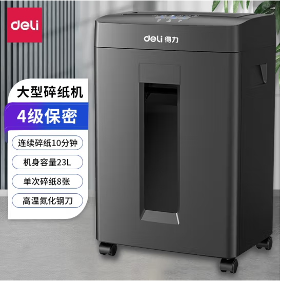 得力14431碎纸机办公电动静音文件粉碎机4级保密商用大功率大容量