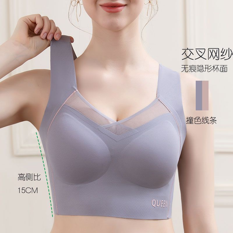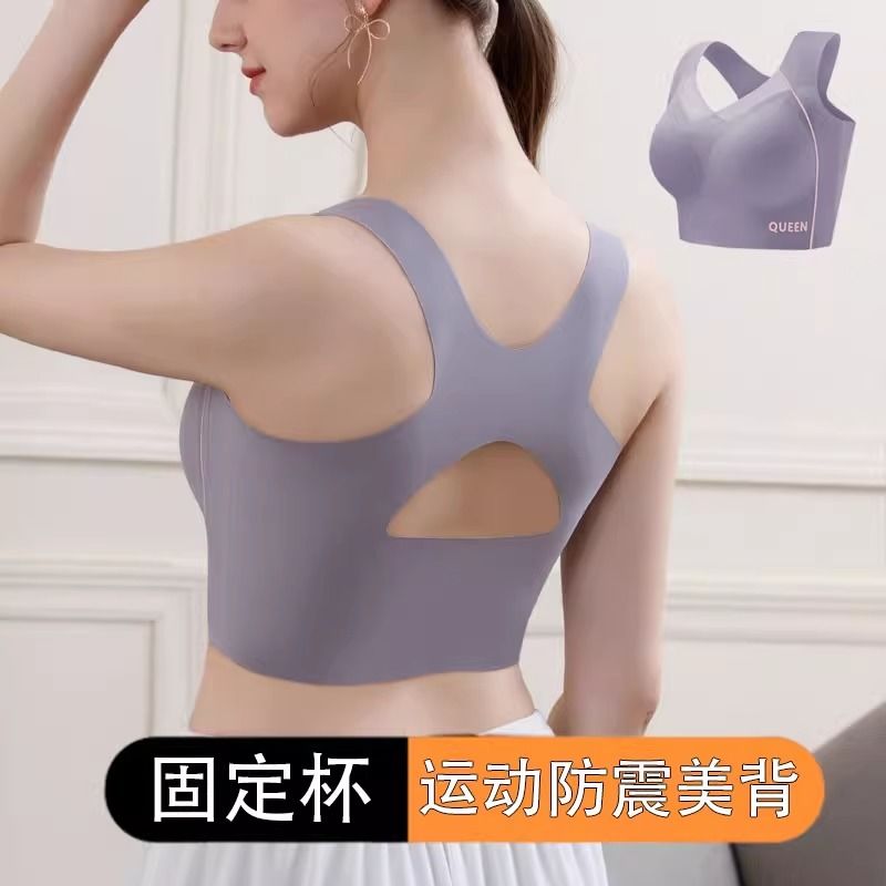 无痕运动内衣女跑步防震健身背心大胸显小大码一体式文胸夏天薄款