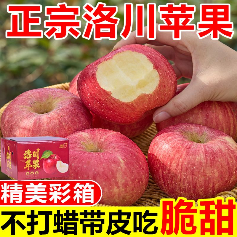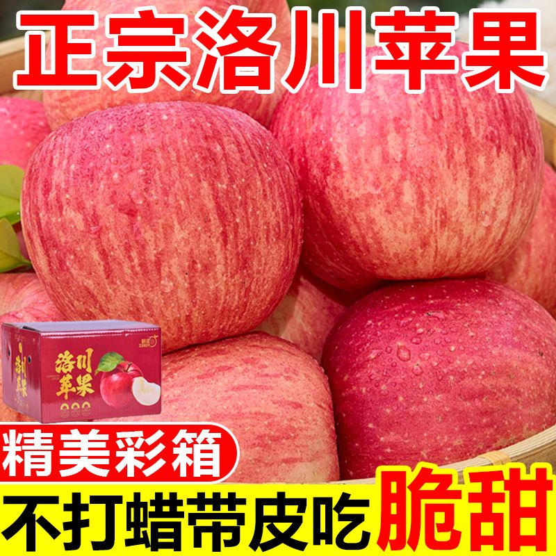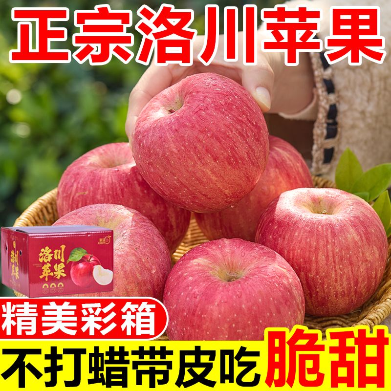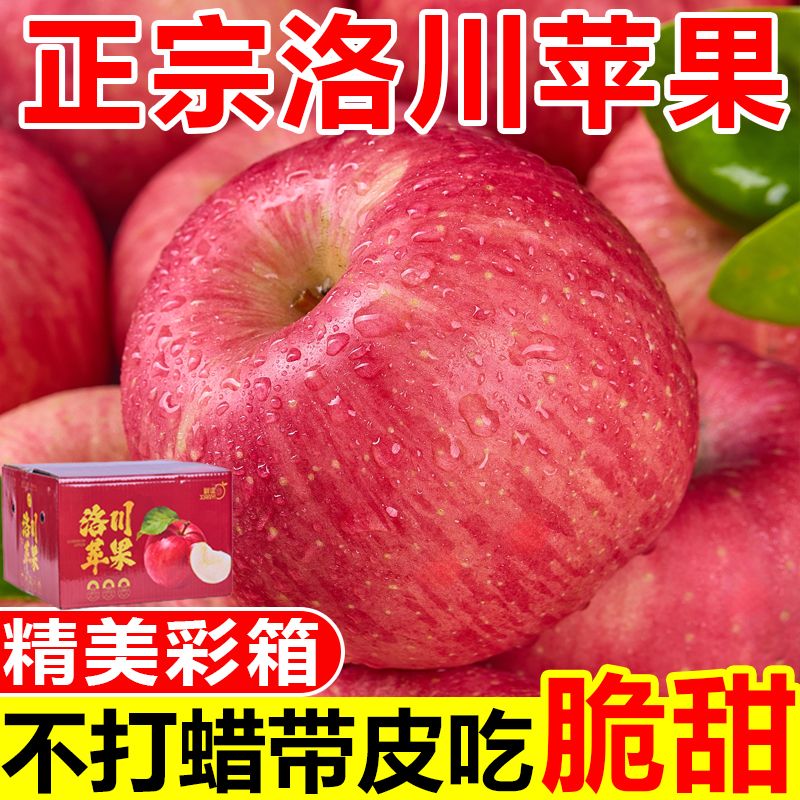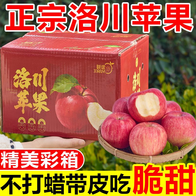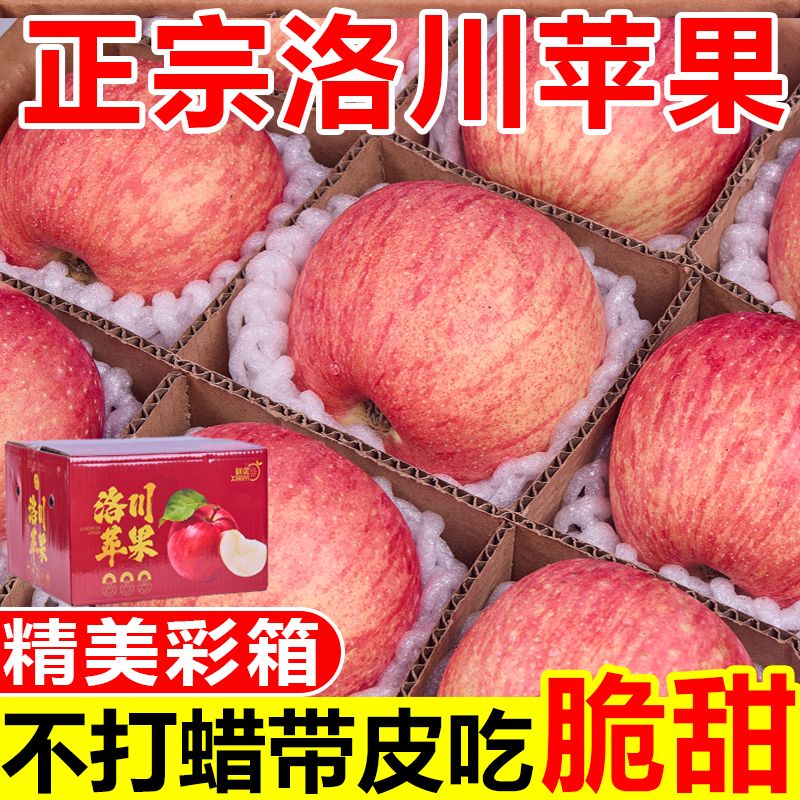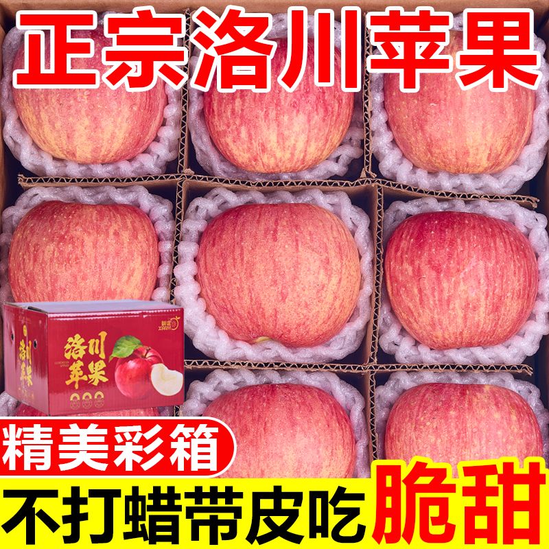 【彩箱装】正宗洛川苹果脆甜陕西富士当季新鲜苹果水果一整箱批发