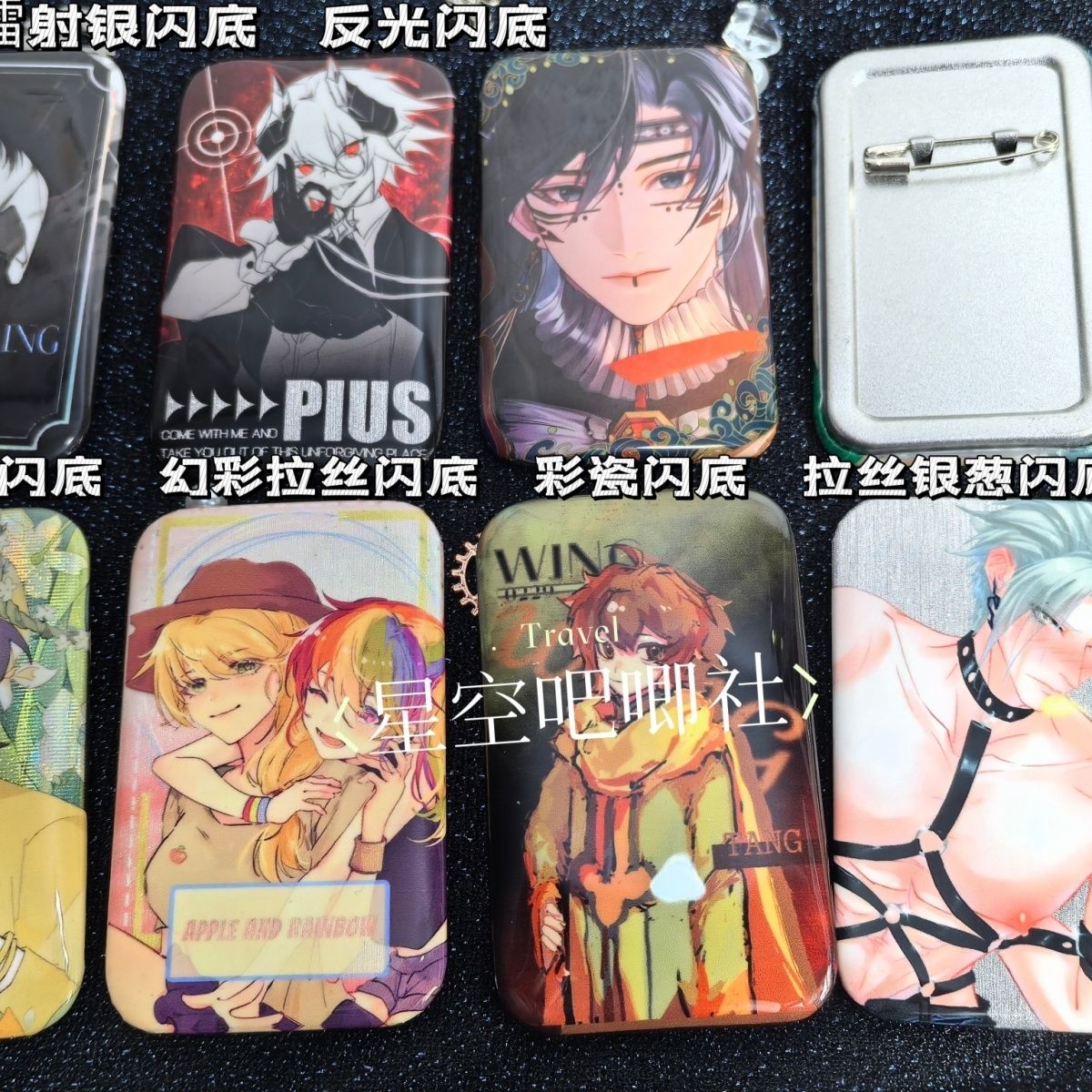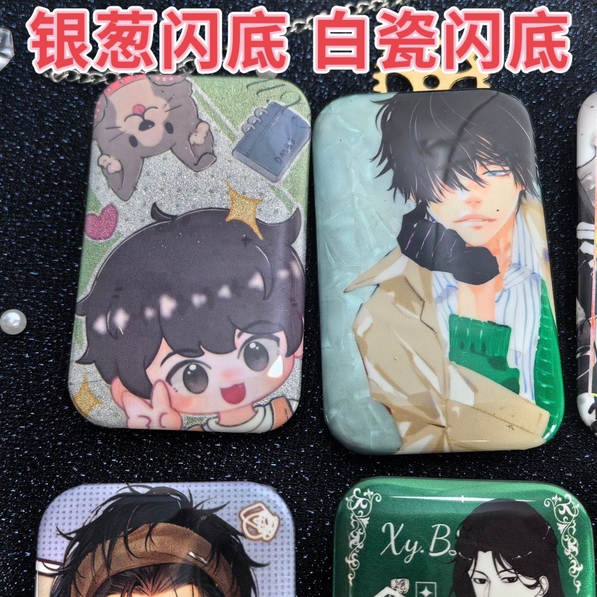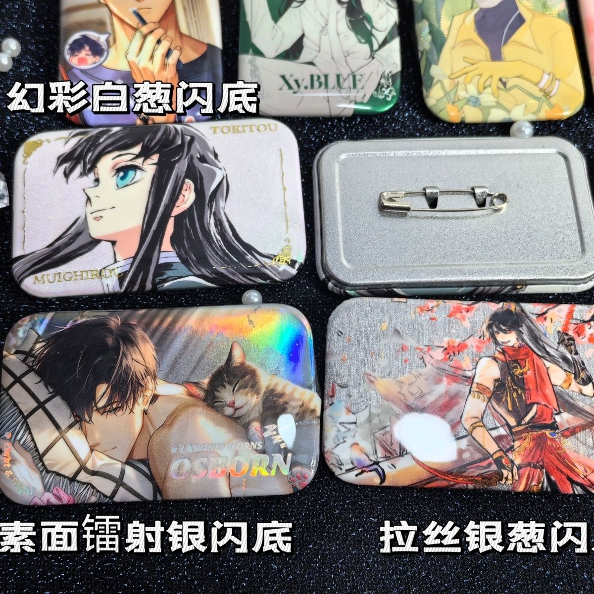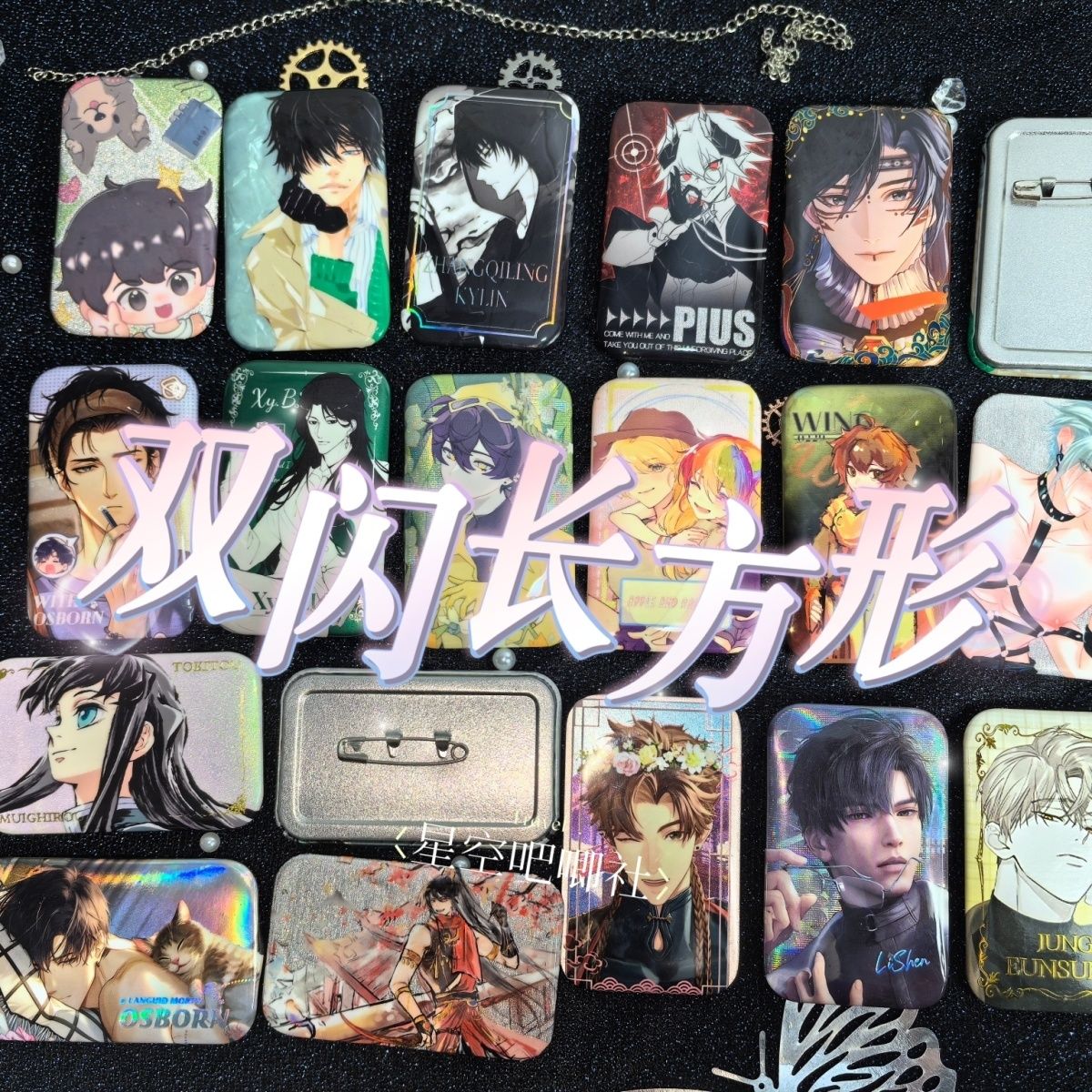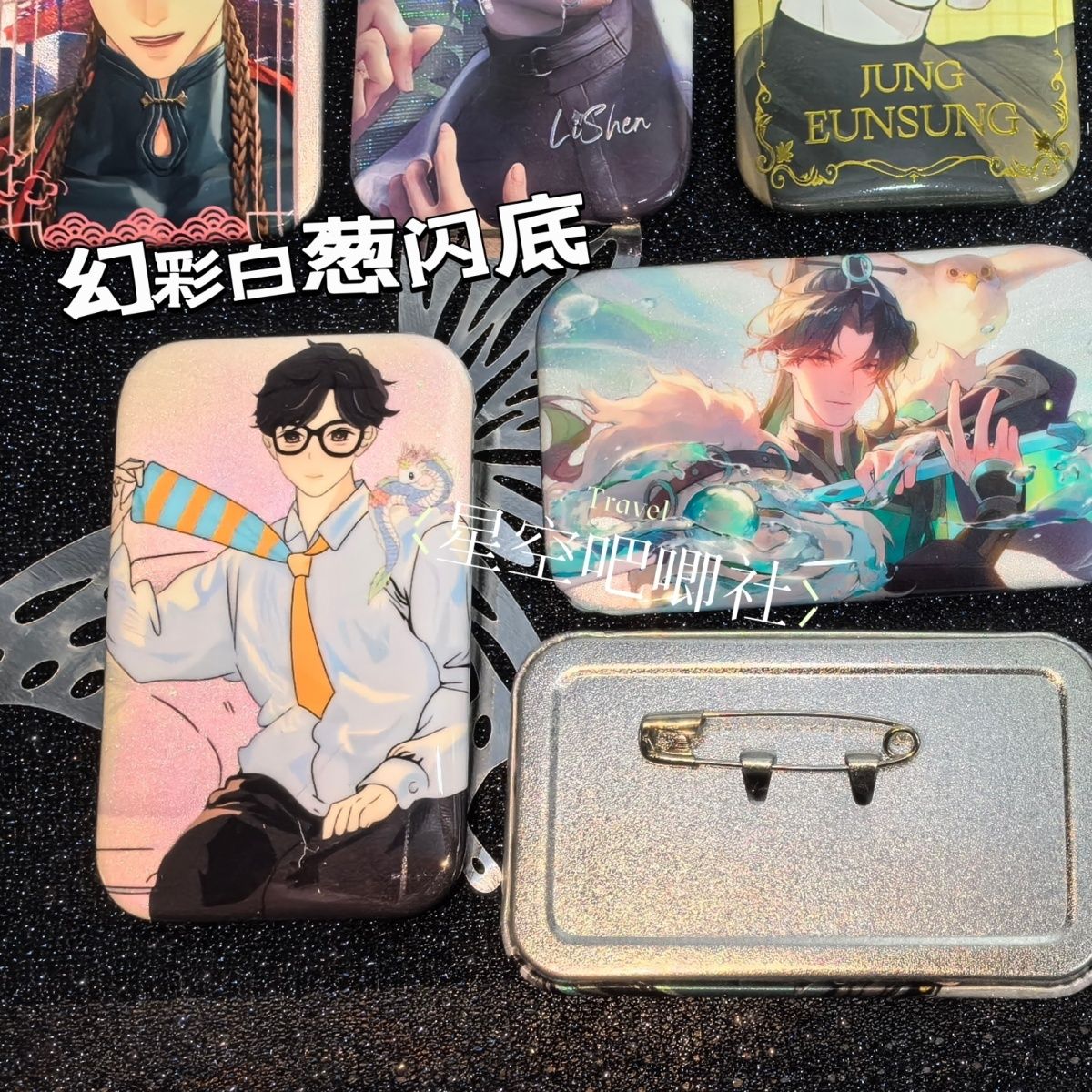 长方形反光银葱双闪吧唧来图定制自印卡通动漫游戏周边胸章70x43