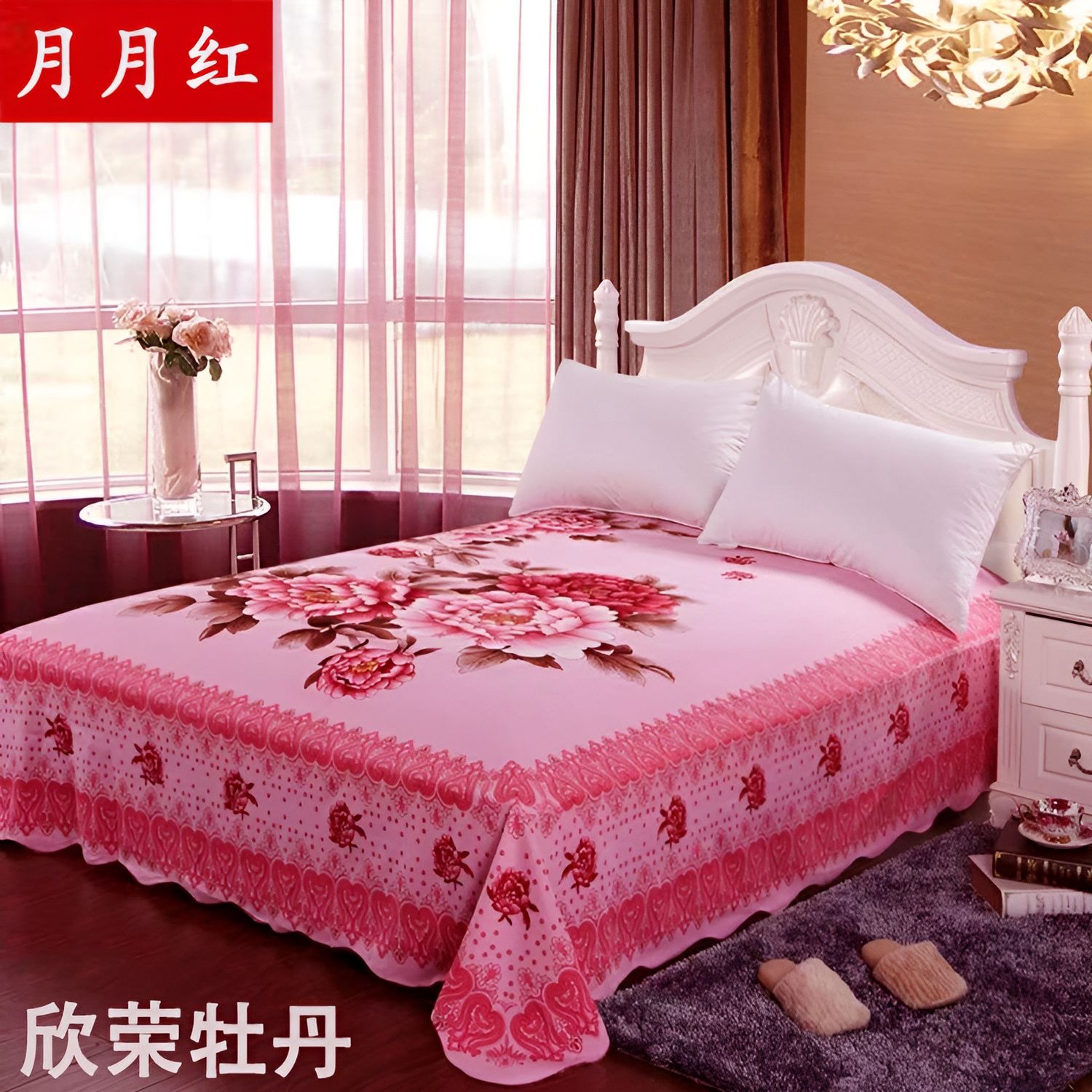 纯棉床单加厚怀旧老式大花老款花型斜纹单件双人四季通用圆角锁边
