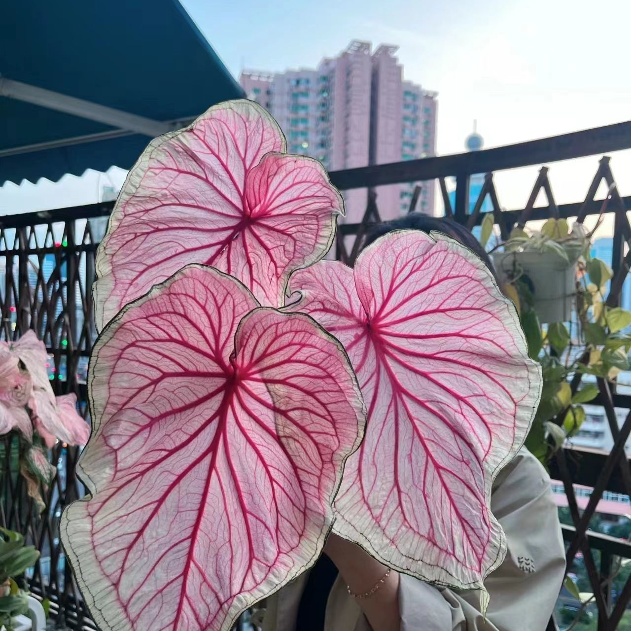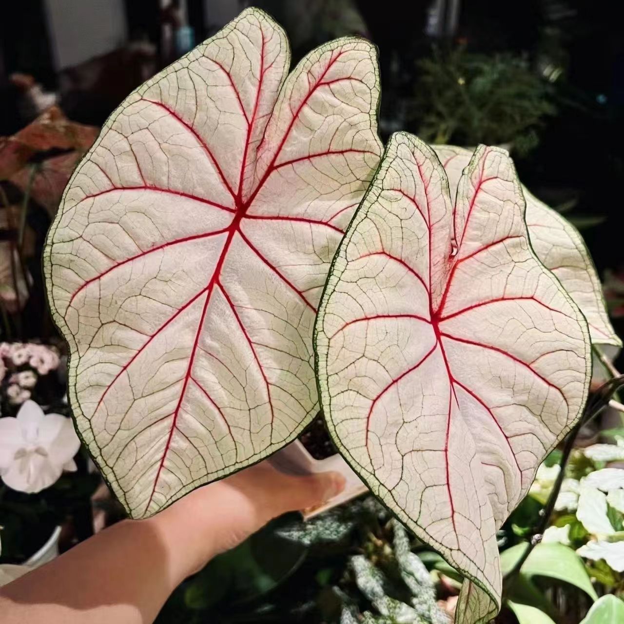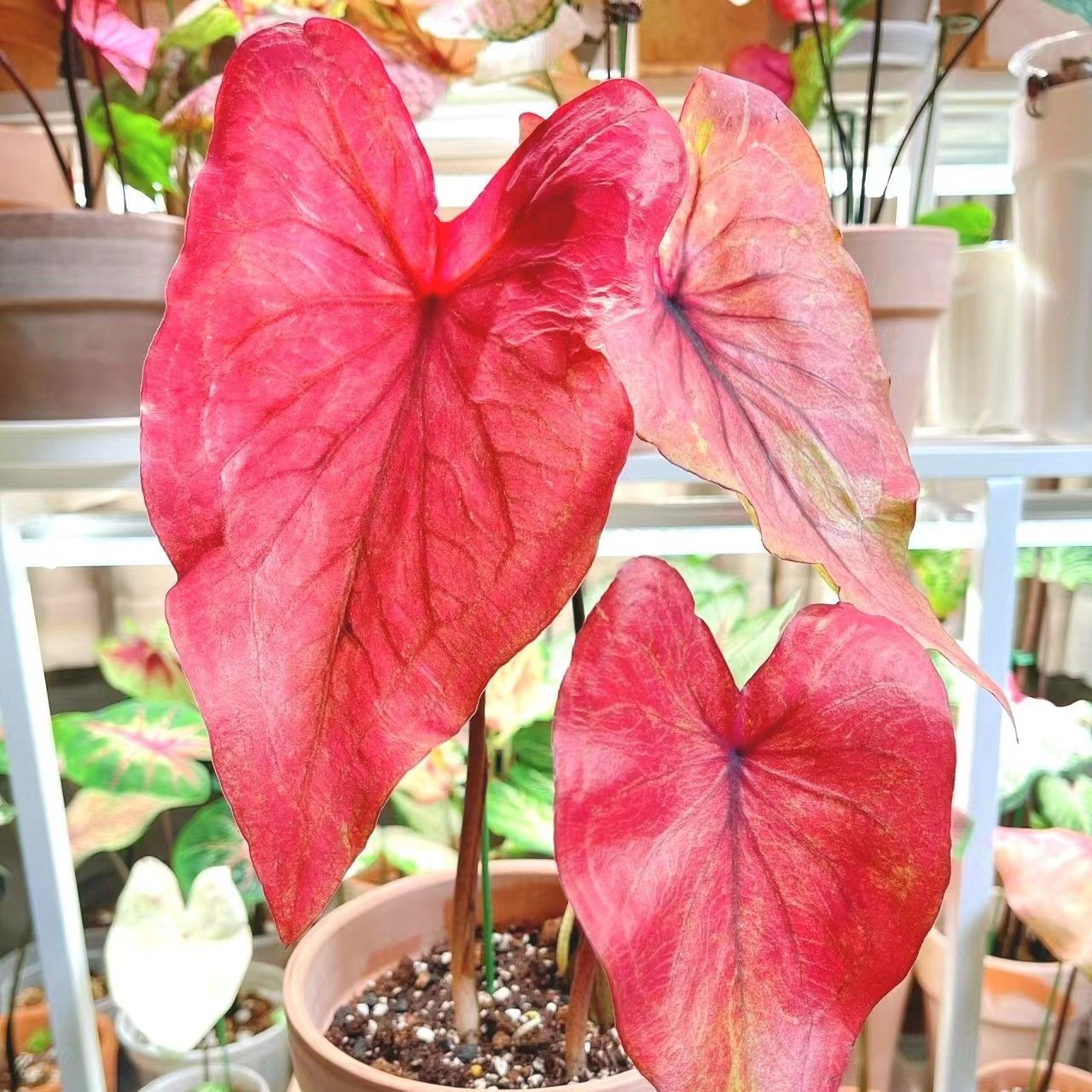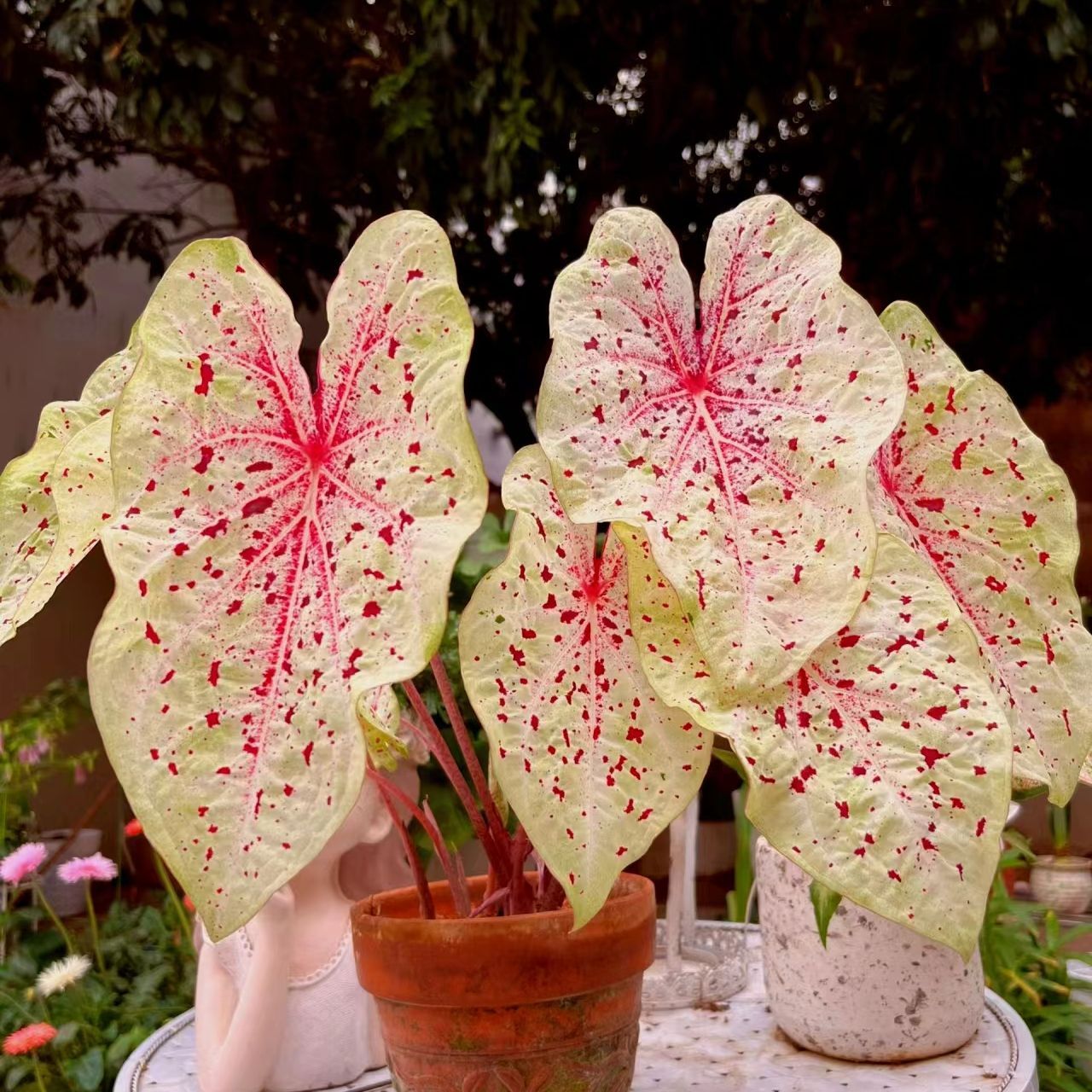 进口彩叶芋花卉绿植喷盆栽阳台庭院观叶植物粉色飞溅白色恋人水培