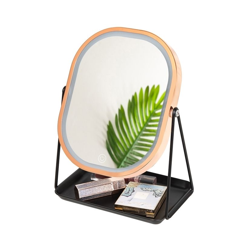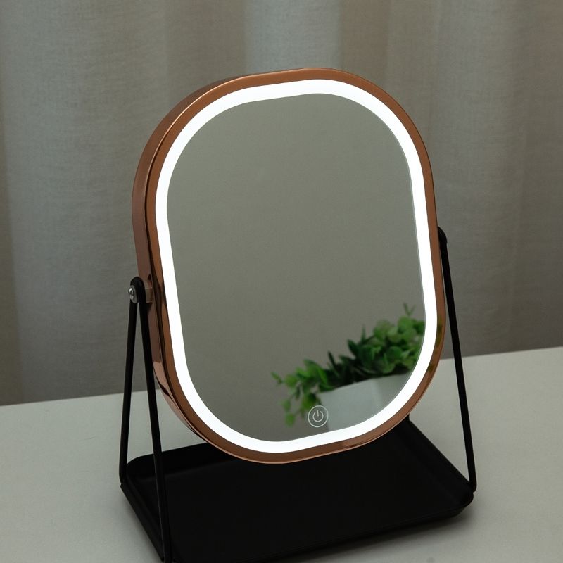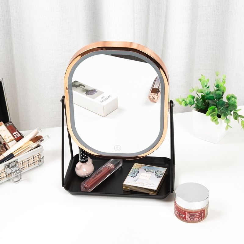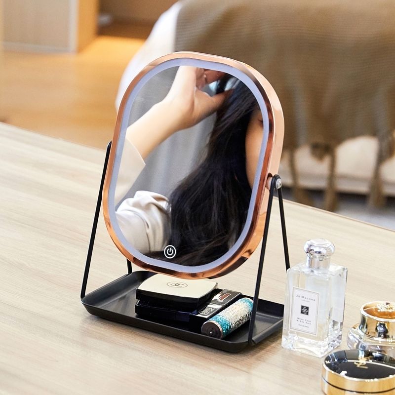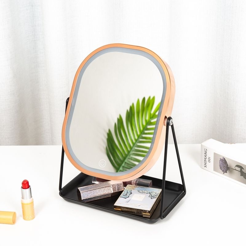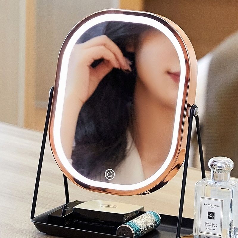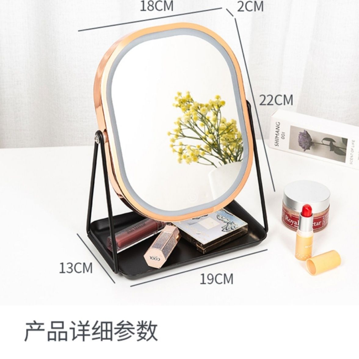 忆美 LED电池款化妆镜美式新款网红美容镜子旋转桌面台镜收纳储物