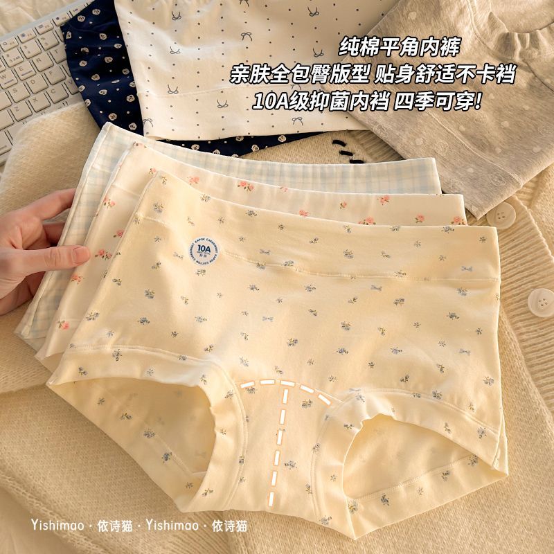 平角内裤女生2025新款安全裤四角内裤小碎花清新纯棉防走光礼盒装