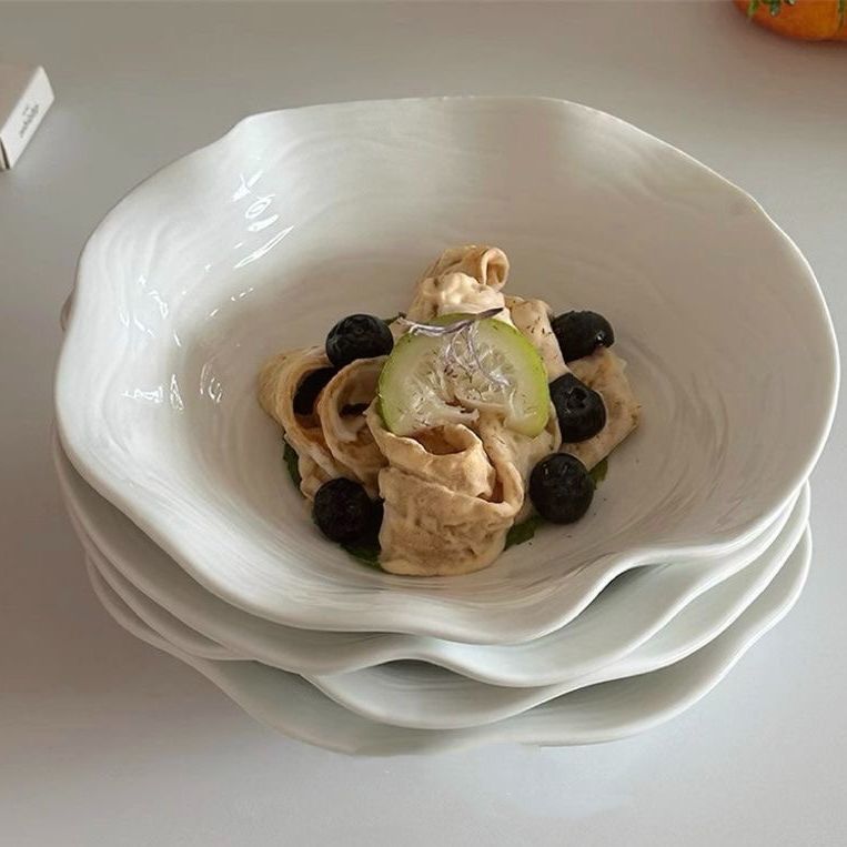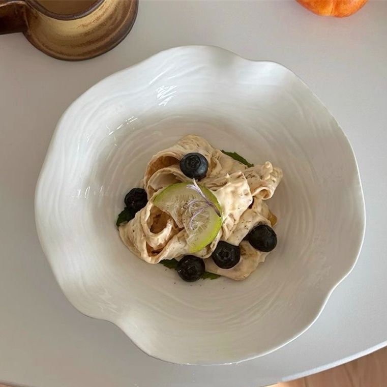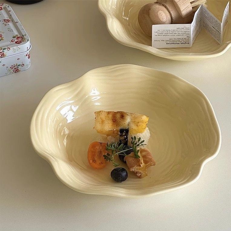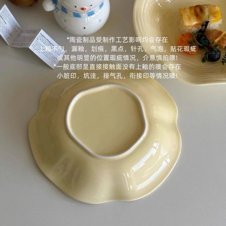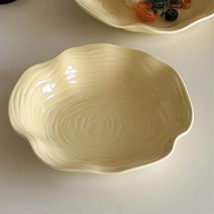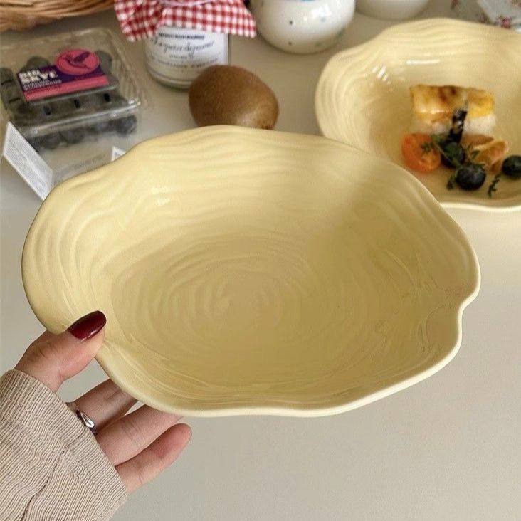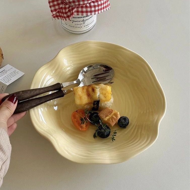 高级简约餐盘黄色盘子ins高颜值家用陶瓷水果沙拉盘意面深盘菜盘