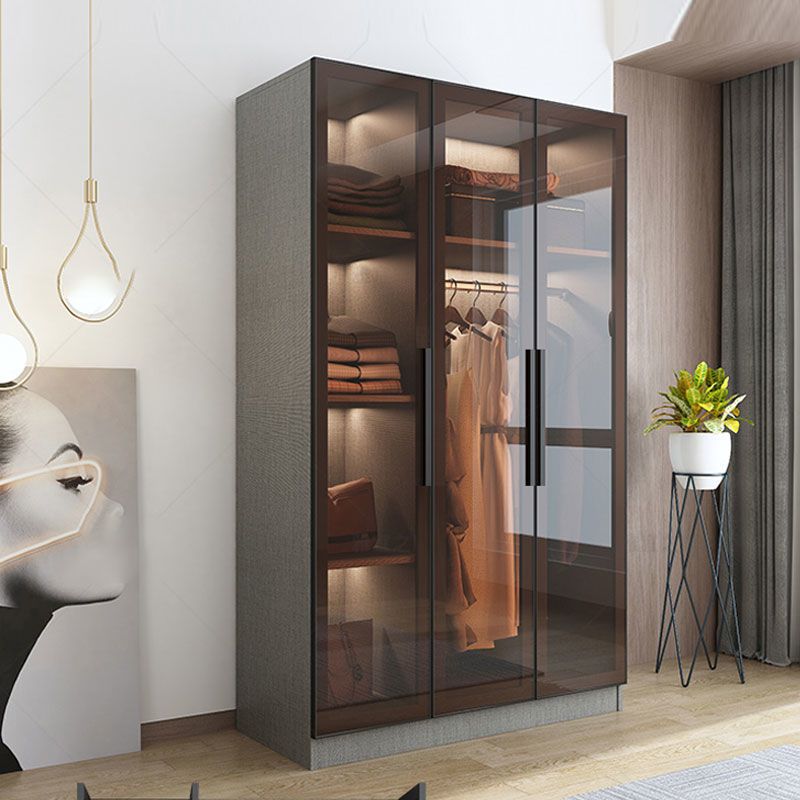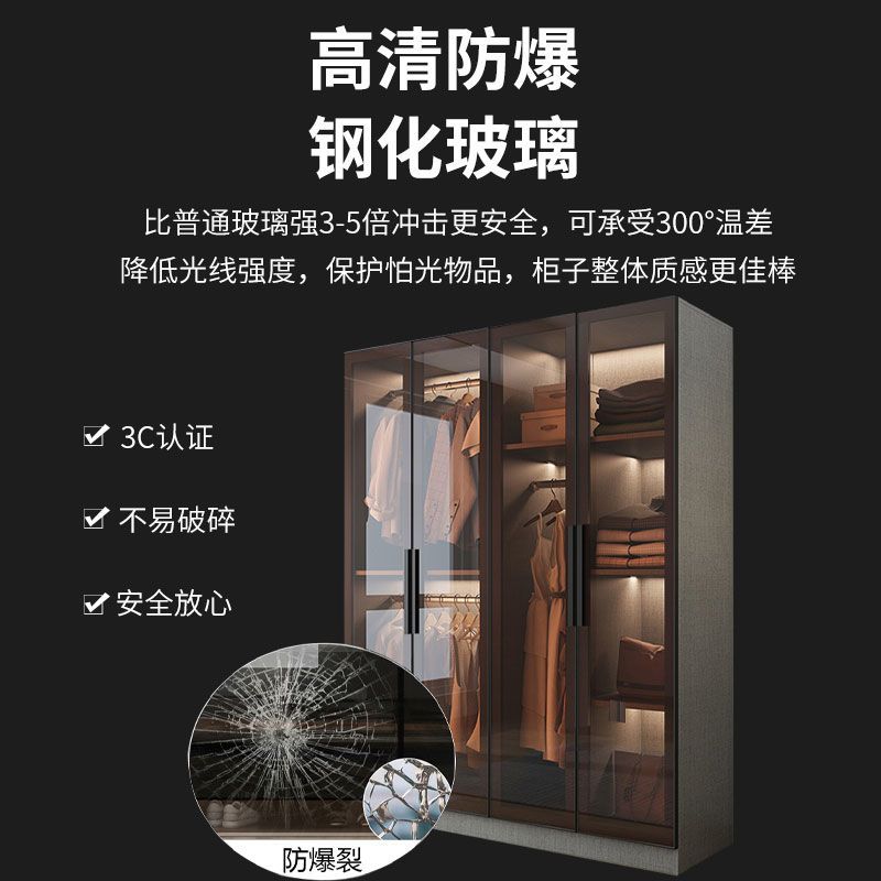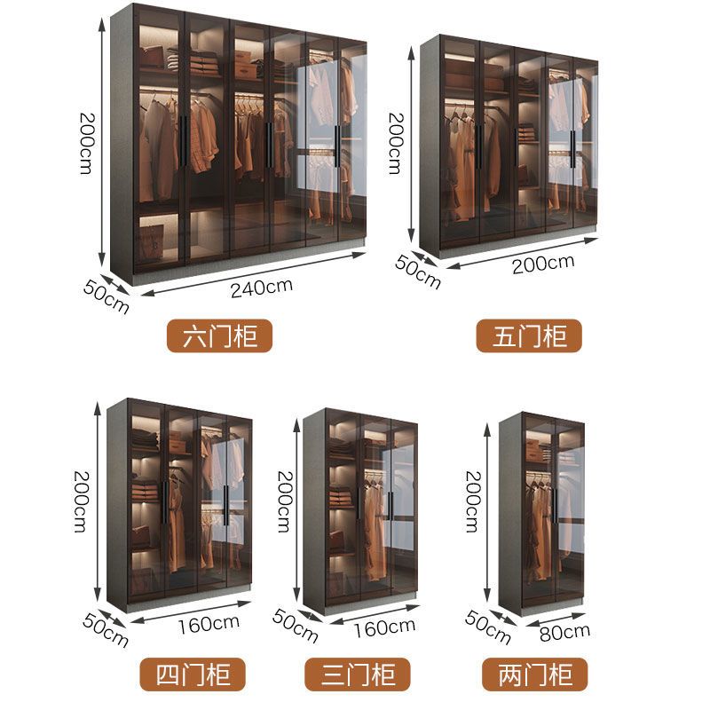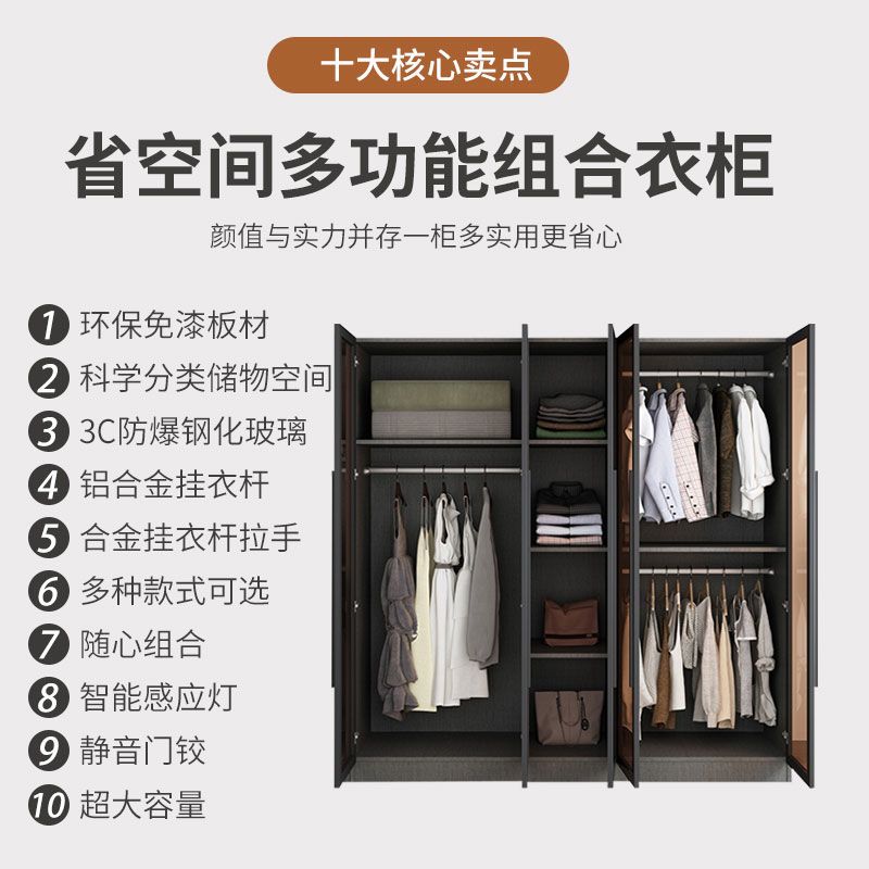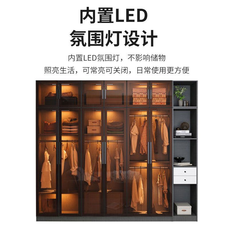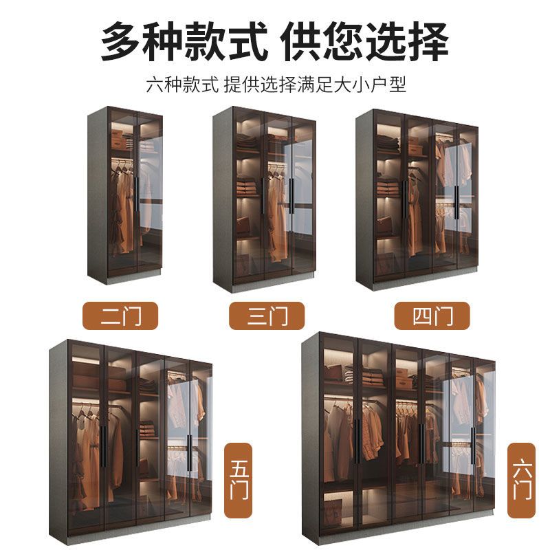 衣柜简约现代家用卧室木质轻奢衣帽间柜子组合玻璃门大衣橱免安装