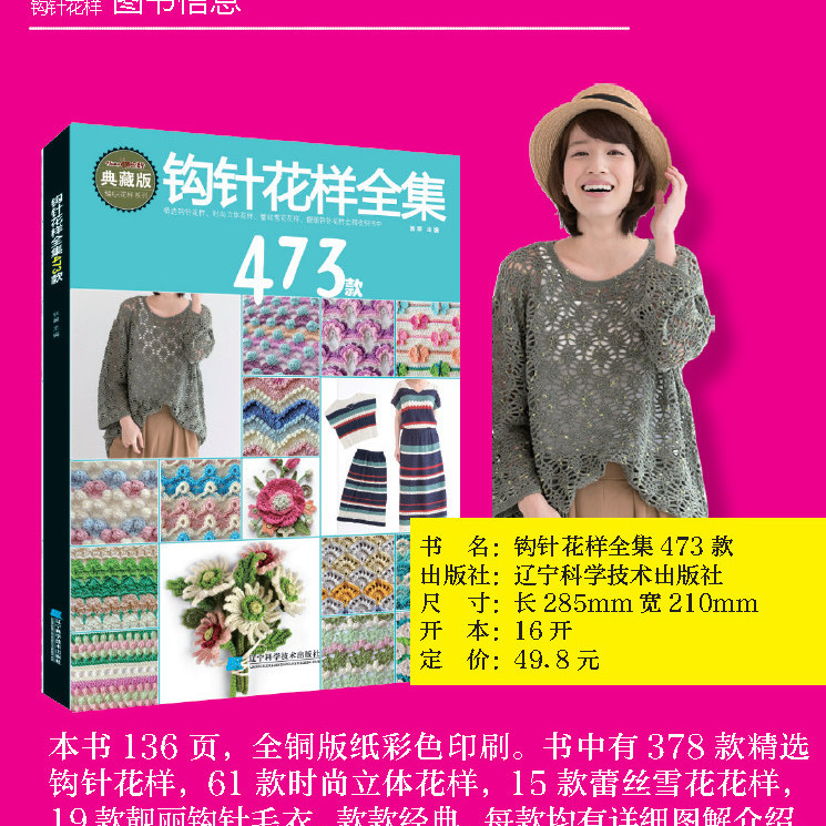 蕾丝花边立体花花样地垫抱枕毛衣钩织图案大全 钩针花样全集473款